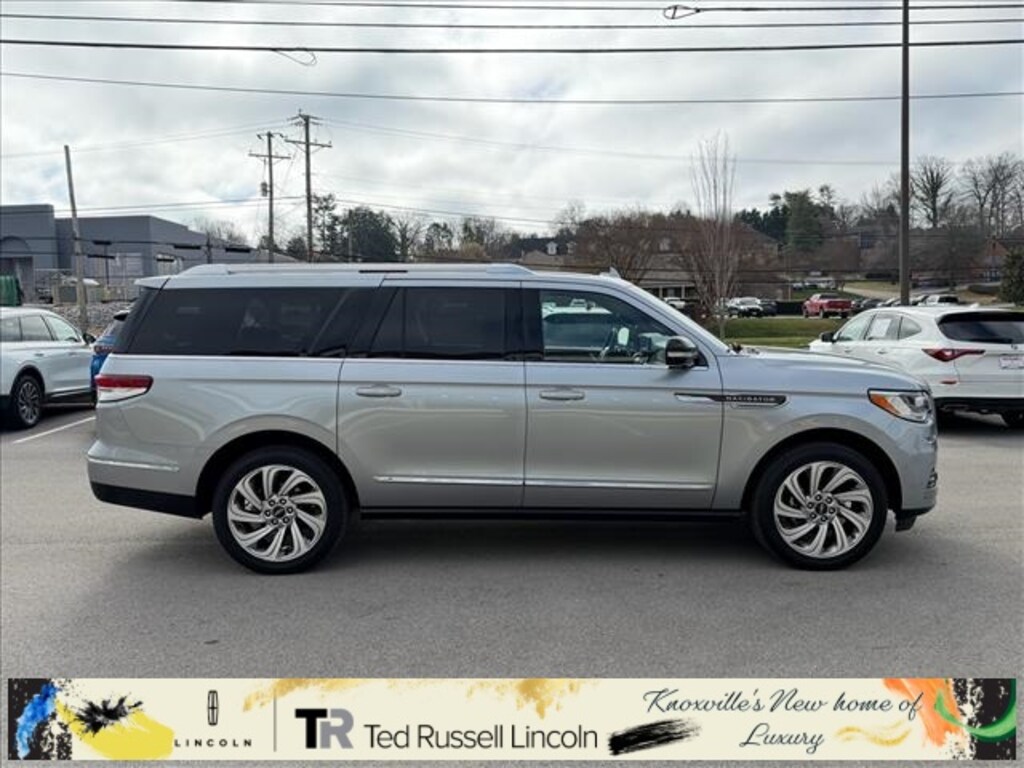 Ted Russell **Included Features: Equipment Group 201A Reserve I, Luxury Package (Illuminated 1st & 2nd Row Seat Belts, Lincoln Lit Star in Grille, Perfect Position Seats (30-Way) w/Active Motion, and Radio: Revel Ultima 3D Audio System w/28 Speakers), 14 Speakers, 3.73 Axle Ratio, 3rd row seats: split-bench, 4-Wheel Disc Brakes, ABS brakes, Adaptive suspension, Adjustable pedals, Air Conditioning, All-Weather Floor Liners w/o Fr/Rr Carpet Flr Mats, Alloy wheels, AM/FM radio: SiriusXM with 360L, Apple CarPlay/Android Auto, Audio memory, Auto High-beam Headlights, Auto Start-Stop Technology, Auto tilt-away steering wheel, Auto-dimming door mirrors, Auto-dimming Rear-View mirror, Auto-leveling suspension, Automatic temperature control, Bodyside moldings, Brake assist, Bumpers: body-color, Compass, Delay-off headlights, Driver door bin, Driver vanity mirror, Driver's Seat Mounted Armrest, Dual front impact airbags, Dual front side impact airbags, Electronic Stability Control, Emergency communication system: 911 Assist, Exterior Parking Camera Rear, Four wheel independent suspension, Front anti-roll bar, Front Bucket Seats, Front dual zone A/C, Front fog lights, Front reading lights, Fully automatic headlights, Garage door transmitter, Genuine wood dashboard insert, Genuine wood door panel insert, Head restraints memory, Heads-Up Display, Heated door mirrors, Heated front seats, Heated rear seats, Heated steering wheel, HVAC memory, Illuminated entry, Lane Departure Warning System, Leather steering wheel, Low tire pressure warning, Memory seat, Navigation system: Connected Navigation (1-year trial), Occupant sensing airbag, Outside temperature display, Overhead airbag, Overhead console, Panic alarm, Passenger door bin, Passenger seat mounted armrest, Passenger vanity mirror, Pedal memory, Power adjustable rear head restraints, Power door mirrors, Power driver seat, Power Liftgate, Power moonroof: Panoramic Vista Roof, Power passenger seat, Power steering, Power windows, Prem Lthr Auto Htd/Ventiltd Perfect Position Seats, Radio data system, Radio: Revel Audio System w/Satelllite/AM/FM/HD, Rain sensing wipers, Rear air conditioning, Rear anti-roll bar, Rear audio controls, Rear reading lights, Rear window defroster, Rear window wiper, Reclining 3rd row seat, Remote keyless entry, Security system, SiriusXM w/360L, Speed control, Speed-sensing steering, Speed-Sensitive Wipers, Split folding rear seat, Spoiler, Steering wheel memory, Steering wheel mounted audio controls, SYNC 4 Communications & Entertainment System, Tachometer, Telescoping steering wheel, Tilt steering wheel, Traction control, Trip computer, Turn signal indicator mirrors, Variably intermittent wipers, Ventilated front seats, Ventilated rear seats, Voice-Activated Touchscreen Navigation System, and Wheels: 22" Bright Machined Aluminum.