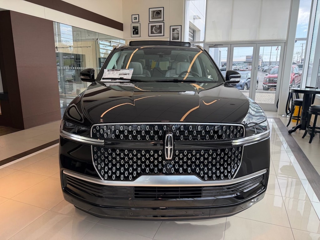 **Included Features: Equipment Group 202A Reserve II (Auto Heated/Ventilated Premium Leather Captain's Chairs, BlueCruise Equipped (4-Years Included), Lincoln App, Lincoln Digital Experience, Radio: Revel Ultima 3D Audio System, SiriusXM with 360L (3 Months Trial), and Wheels: 22" Dark Tarnished Aluminum), Heavy-Duty Trailer Tow Package (26mm Engine Radiator and Trailer Brake Controller), Lincoln Connectivity Package (4-Years Included), Lincoln Security Package, 28 Speakers, 2nd Row Heated & Ventilated Dual Captain's Chair, 3rd row seats: split-bench, 4-Wheel Disc Brakes, ABS brakes, Adaptive suspension, Air Conditioning, Alloy wheels, AM/FM radio: SiriusXM with 360L, Apple CarPlay/Android Auto, Audio memory, Auto High-beam Headlights, Auto Start-Stop Technology, Auto tilt-away steering wheel, Auto-dimming door mirrors, Auto-dimming Rear-View mirror, Auto-leveling suspension, Automatic temperature control, Brake assist, Bumpers: body-color, Compass, Delay-off headlights, Driver door bin, Driver vanity mirror, Driver's Seat Mounted Armrest, Dual front impact airbags, Dual front side impact airbags, Electronic Stability Control, Emergency communication system: 911 Assist, Exterior Parking Camera Rear, Four wheel independent suspension, Front anti-roll bar, Front Bucket Seats, Front dual zone A/C, Front reading lights, Fully automatic headlights, Garage door transmitter, Heated door mirrors, Heated front seats, Heated rear seats, Heated steering wheel, HVAC memory, Illuminated entry, Leather steering wheel, Low tire pressure warning, Memory seat, Navigation system: Connected Navigation (1-year trial), Occupant sensing airbag, Outside temperature display, Overhead airbag, Overhead console, Panic alarm, Passenger door bin, Passenger seat mounted armrest, Passenger vanity mirror, Power adjustable rear head restraints, Power door mirrors, Power driver seat, Power moonroof: Panoramic Vista Roof, Power passenger seat, Power steering, Power windows, Radio data system, Rain sensing wipers, Rear air conditioning, Rear anti-roll bar, Rear audio controls, Rear reading lights, Rear window defroster, Rear window wiper, Reclining 3rd row seat, Remote keyless entry, Security system, Speed control, Speed-sensing steering, Speed-Sensitive Wipers, Split folding rear seat, Spoiler, Steering wheel memory, Steering wheel mounted audio controls, Tachometer, Telescoping steering wheel, Tilt steering wheel, Traction control, Trip computer, Turn signal indicator mirrors, Variably intermittent wipers, Ventilated front seats, and Wheels: 24" Bright Machined Aluminum.