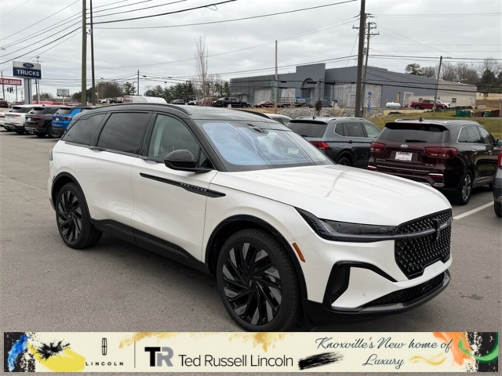 **Included Features: Equipment Group 203A Reserve III (110V Power Converter, Auto Air Refresh, BlueCruise Equipped (4-Years Included), Digital Scent, Hands-Free Power Liftgate, Panoramic Vista Roof with Powershade, Premium Leather-Trimmed Heated/Ventilated Captain's Chairs, Radio: AM/FM Revel Ultima 3D Audio System, Rear Heated Seats with Switch Control, and SiriusXM with 360L), Jet Appearance Package (Black Exterior Elements, Body-Color Exterior Elements, and Wheels: : 22" Satin Dark Luster Aluminum), Lincoln Connectivity Package, 10 Speakers, 4-Wheel Disc Brakes, ABS brakes, Adaptive suspension, Air Conditioning, Alloy wheels, AM/FM radio: SiriusXM with 360L, Apple CarPlay/Android Auto, Auto High-beam Headlights, Auto tilt-away steering wheel, Auto-dimming Rear-View mirror, Automatic temperature control, Brake assist, Bumpers: body-color, Compass, Delay-off headlights, Driver door bin, Driver vanity mirror, Dual front impact airbags, Dual front side impact airbags, Electronic Stability Control, Emergency communication system: 911 Assist, Exterior Parking Camera Rear, Four wheel independent suspension, Front anti-roll bar, Front Bucket Seats, Front Center Armrest w/Storage, Front dual zone A/C, Front reading lights, Fully automatic headlights, Garage door transmitter, Heated door mirrors, Heated front seats, Heated steering wheel, Illuminated entry, Knee airbag, Leather steering wheel, Lincoln App, Lincoln Digital Experience, Low tire pressure warning, Memory seat, Navigation System, Occupant sensing airbag, Outside temperature display, Overhead airbag, Overhead console, Panic alarm, Passenger door bin, Passenger vanity mirror, Power door mirrors, Power driver seat, Power Liftgate, Power passenger seat, Power steering, Power windows, Premium Leather Trimmed Captain's Chairs, Radio data system, Radio: AM/FM Revel Audio System, Rain sensing wipers, Rear anti-roll bar, Rear reading lights, Rear seat center armrest, Rear window defroster, Rear window wiper, Remote keyless entry, Security system, Speed control, Speed-sensing steering, Speed-Sensitive Wipers, Split folding rear seat, Spoiler, Steering wheel memory, Steering wheel mounted audio controls, Tachometer, Telescoping steering wheel, Tilt steering wheel, Traction control, Trip computer, Turn signal indicator mirrors, Variably intermittent wipers, and Ventilated front seats.