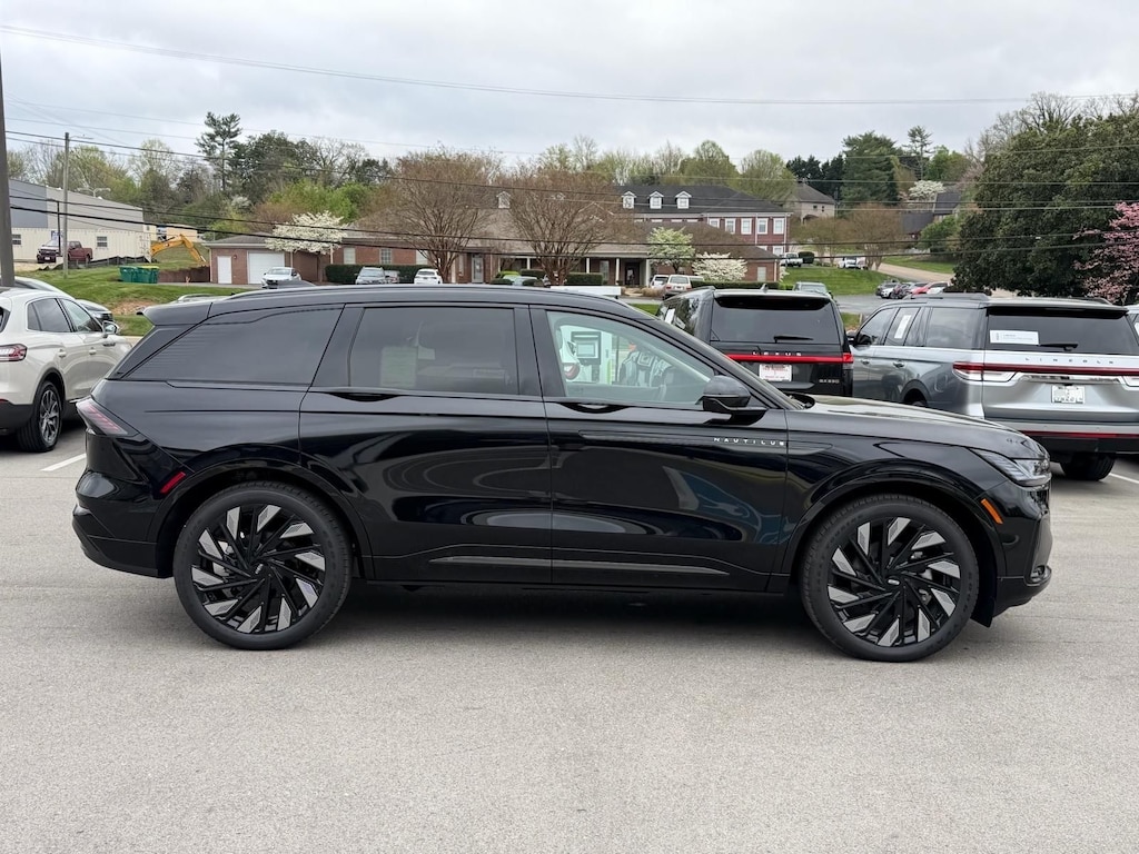 **Included Features: Equipment Group 202A Reserve II (110V Power Converter, Auto Air Refresh, BlueCruise Equipped (4-Years Included), Digital Scent, Hands-Free Power Liftgate, Lincoln App, Lincoln Digital Experience, Panoramic Vista Roof with Powershade, Premium Leather Trimmed Captain's Chairs, Radio: AM/FM Revel Audio System, Rear Heated Seats with Switch Control, and SiriusXM with 360L), Jet Appearance Package (Black Exterior Elements, Body-Color Exterior Elements, and Wheels: : 22" Satin Dark Luster Aluminum), Lincoln Connectivity Package, 10 Speakers, 4-Wheel Disc Brakes, ABS brakes, Adaptive suspension, Air Conditioning, Alloy wheels, AM/FM radio: SiriusXM with 360L, Apple CarPlay/Android Auto, Auto High-beam Headlights, Auto tilt-away steering wheel, Auto-dimming Rear-View mirror, Automatic temperature control, Brake assist, Bumpers: body-color, Compass, Delay-off headlights, Driver door bin, Driver vanity mirror, Dual front impact airbags, Dual front side impact airbags, Electronic Stability Control, Emergency communication system: 911 Assist, Exterior Parking Camera Rear, Four wheel independent suspension, Front anti-roll bar, Front Bucket Seats, Front Center Armrest w/Storage, Front dual zone A/C, Front reading lights, Fully automatic headlights, Garage door transmitter, Heated door mirrors, Heated front seats, Heated steering wheel, Illuminated entry, Knee airbag, Leather steering wheel, Low tire pressure warning, Memory seat, Navigation System, Occupant sensing airbag, Outside temperature display, Overhead airbag, Overhead console, Panic alarm, Passenger door bin, Passenger vanity mirror, Power door mirrors, Power driver seat, Power Liftgate, Power passenger seat, Power steering, Power windows, Radio data system, Rain sensing wipers, Rear anti-roll bar, Rear reading lights, Rear seat center armrest, Rear window defroster, Rear window wiper, Remote keyless entry, Security system, Speed control, Speed-sensing steering, Speed-Sensitive Wipers, Split folding rear seat, Spoiler, Steering wheel memory, Steering wheel mounted audio controls, Tachometer, Telescoping steering wheel, Tilt steering wheel, Traction control, Trip computer, Turn signal indicator mirrors, Variably intermittent wipers, and Ventilated front seats.